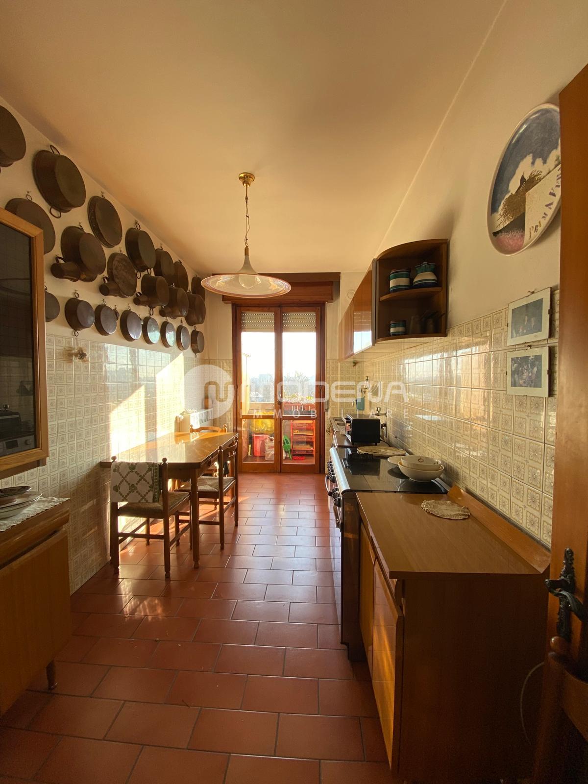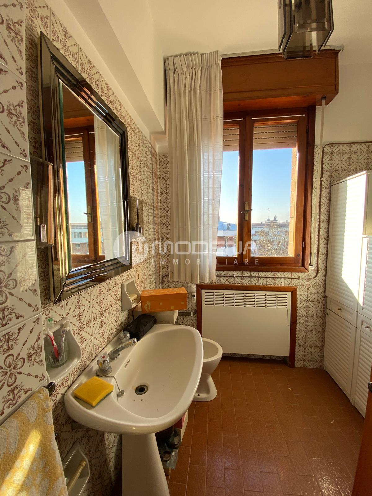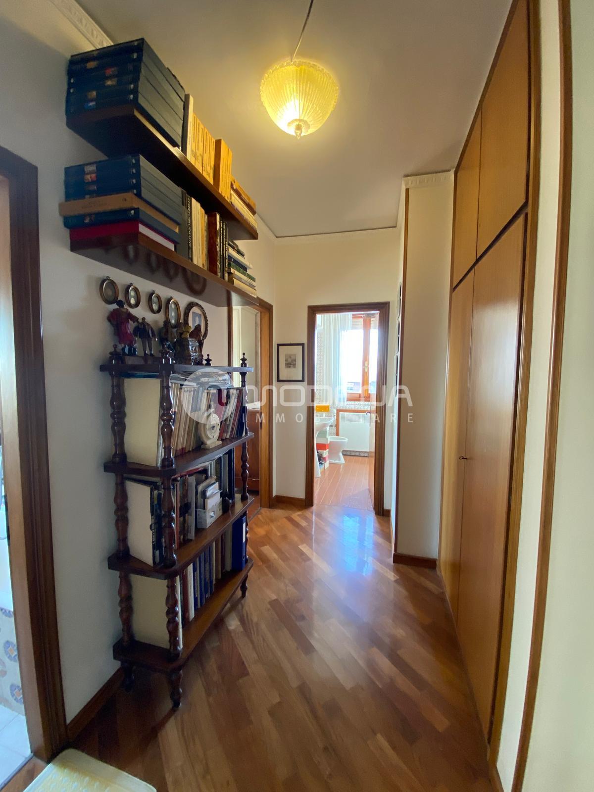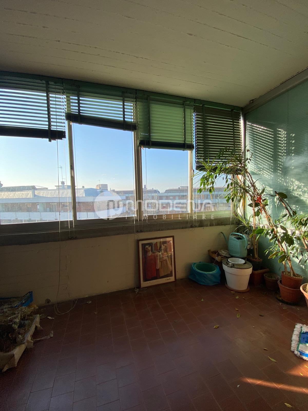 In palazzo signorile a faccia vista con doppio ascensore vendesi appartamento di mq 130 circa al settimo piano composto da: ingresso, ampia sala con terrazzo di mq 12, verandato ed esposto a sud, cucina abitabile, disimpegno notte, tre camere da letto, doppi servizi entrambi finestrati, balcone. Come accessori ha un garage e solaio. A.p.e. classe G (175 kwh/m2 anno).