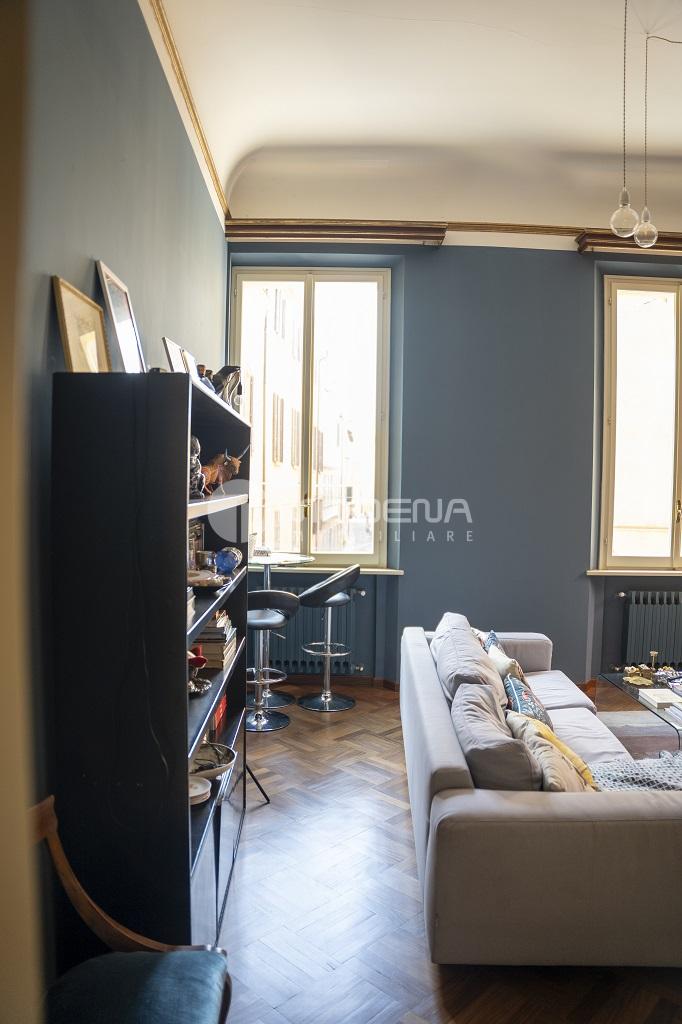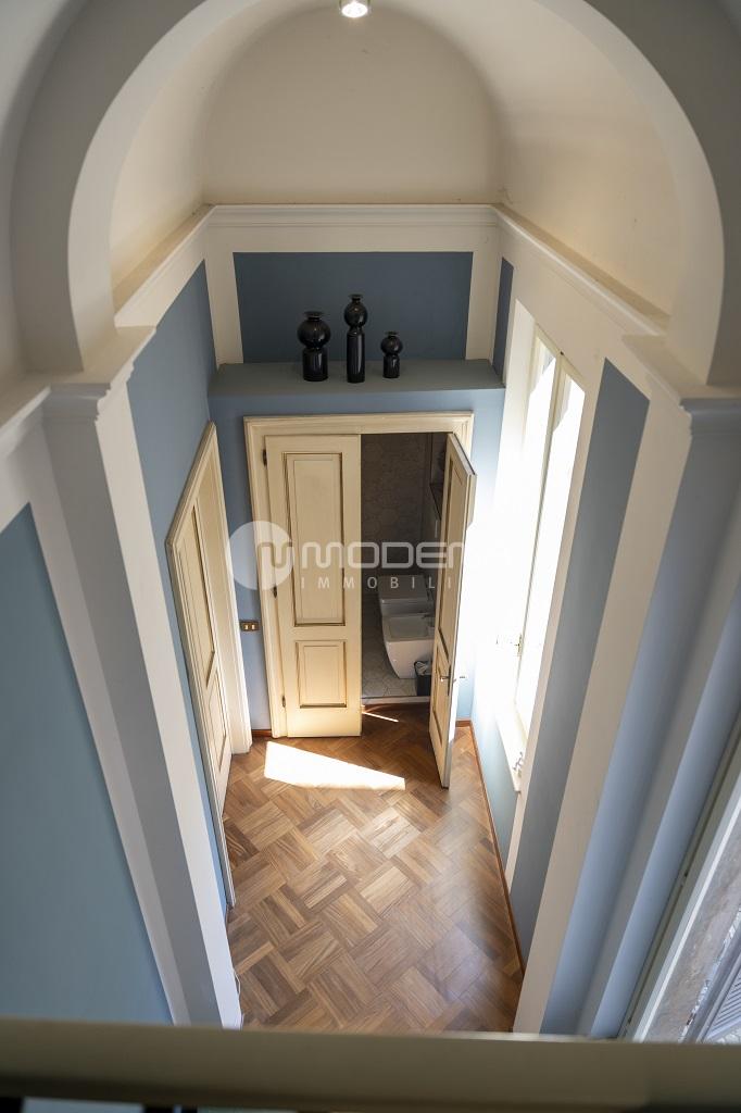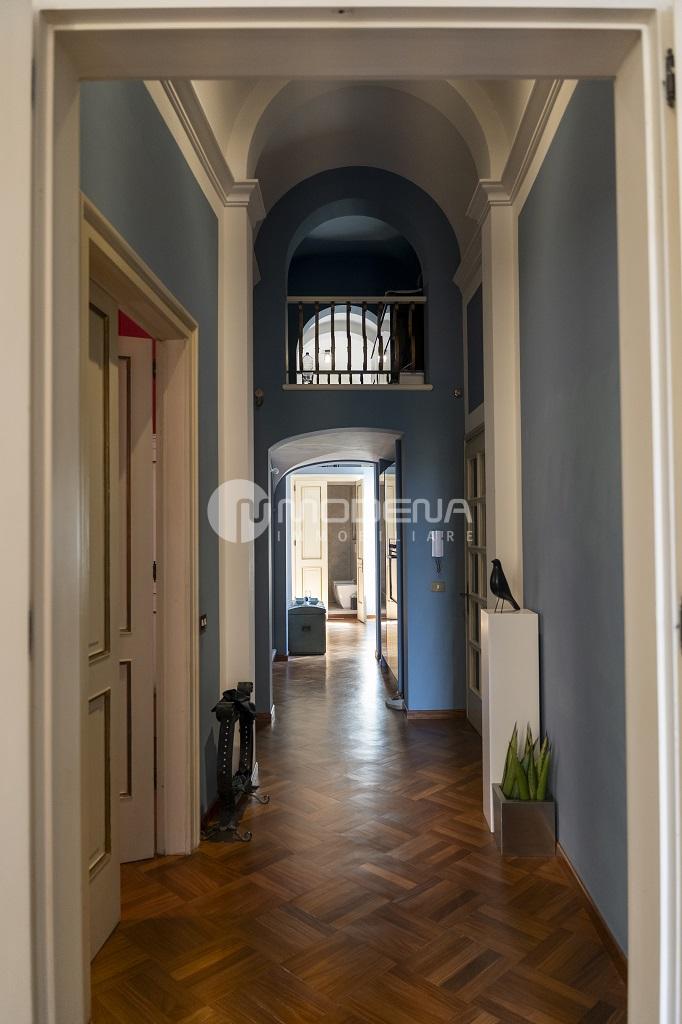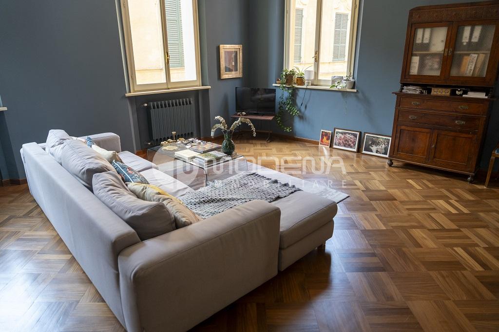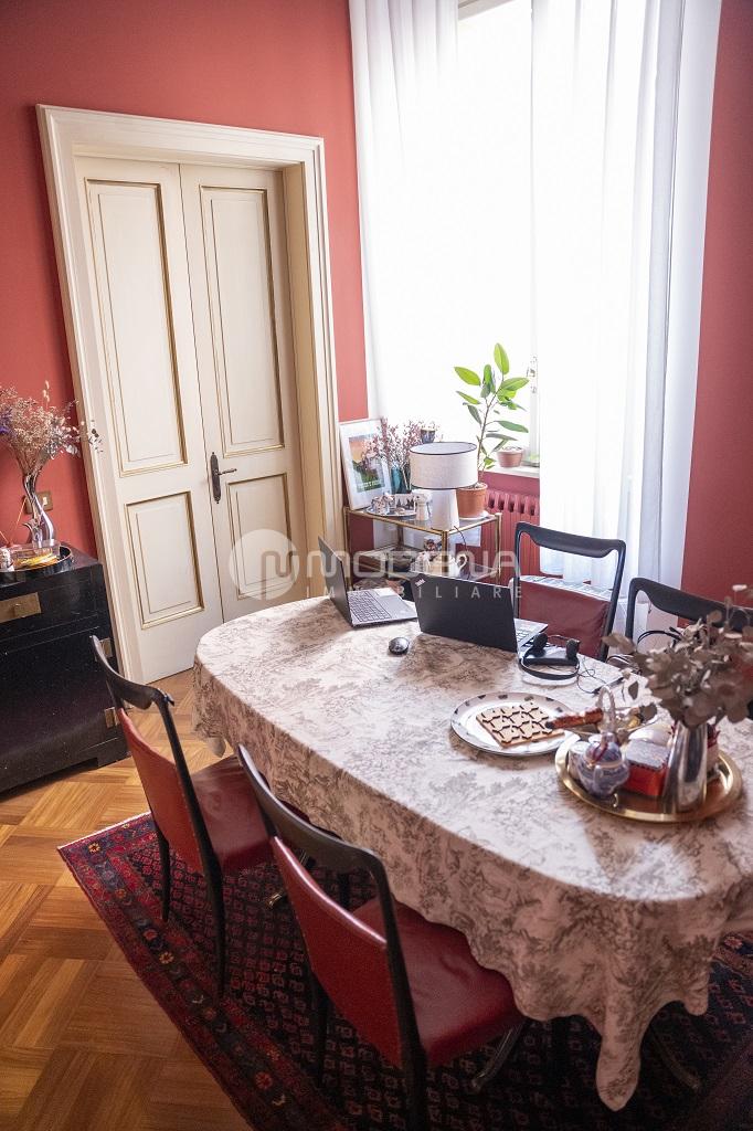 In importante contesto d’epoca, proponiamo appartamento al piano nobile di 150 mq. Si distingue per le importanti altezze interne, in parte soppalcate, i soffitti a volte, le ampie e numerose finestre che lo rendono particolarmente luminoso, i vani collegati internamente tra loro, ma al contempo indipendenti e separabili. La disposizione interna molto versatile lo rende idoneo sia ad un nucleo familiare, sia ad uno studio professionale di rappresentanza. Si compone di: ingresso, guardaroba, sala con camino, cucina soppalco, camera matrimoniale con bagno e cabina armadi, altra camera matrimoniale ed altro bagno. E’ stato oggetto di recente recupero conservativo che ha compreso l’installazione di nuovi impianti elettrici ed idraulici, il ripristino di porte e pavimenti originali. P Possibilità di garage nel cortile interno. Classe energetica in corso di definizione. INFO RISERVATE C/O NS. UFFICIO.