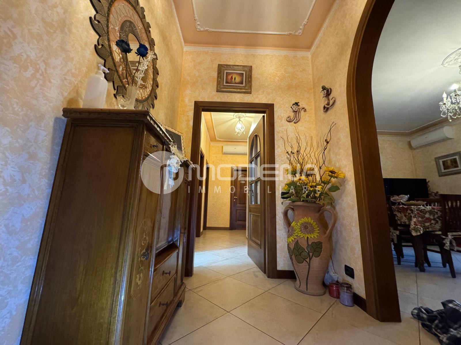In palazzina di poche unità con giardino condominiale, proponiamo appartamento posto al secondo piano senza ascensore di mq 140 così composto: ingresso, ampia sala con balcone, cucina abitabile, corridoio notte, due camere matrimoniali e una cameretta, due bagni con finestra e doccia. Completano la proprietà un solaio e due garage.  Aria condizionata, infissi in legno con doppio vetro e inferiate, porta blindata. Riscaldamento centralizzato con contacalorie. Due posti macchina assegnati nel cortile condominiale. Classe energetica in corso di definizione.