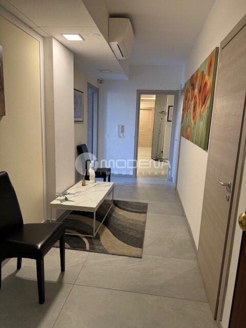 Vendesi ufficio completamente ristrutturato al quarto piano, servito da doppio ascensore, composto da ingresso, due ripostigli, sala d’attesa, sei ampi uffici, doppi servizi. Come accessori ha tre posti auto al piano interrato. Pavimenti in gres porcellanato, porte interne nuove, impianti rifatti, riscaldamento in pompa di calore. Classe energetica B (Ep 243,51 kwh/m2 anno).